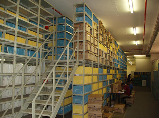 Polydex Storage Systems offers Two Tier Shelving storage solutions. This is effectively double story high steel shelving which is accessed by staircases to row end walkways and catwalks between the rows of shelving.